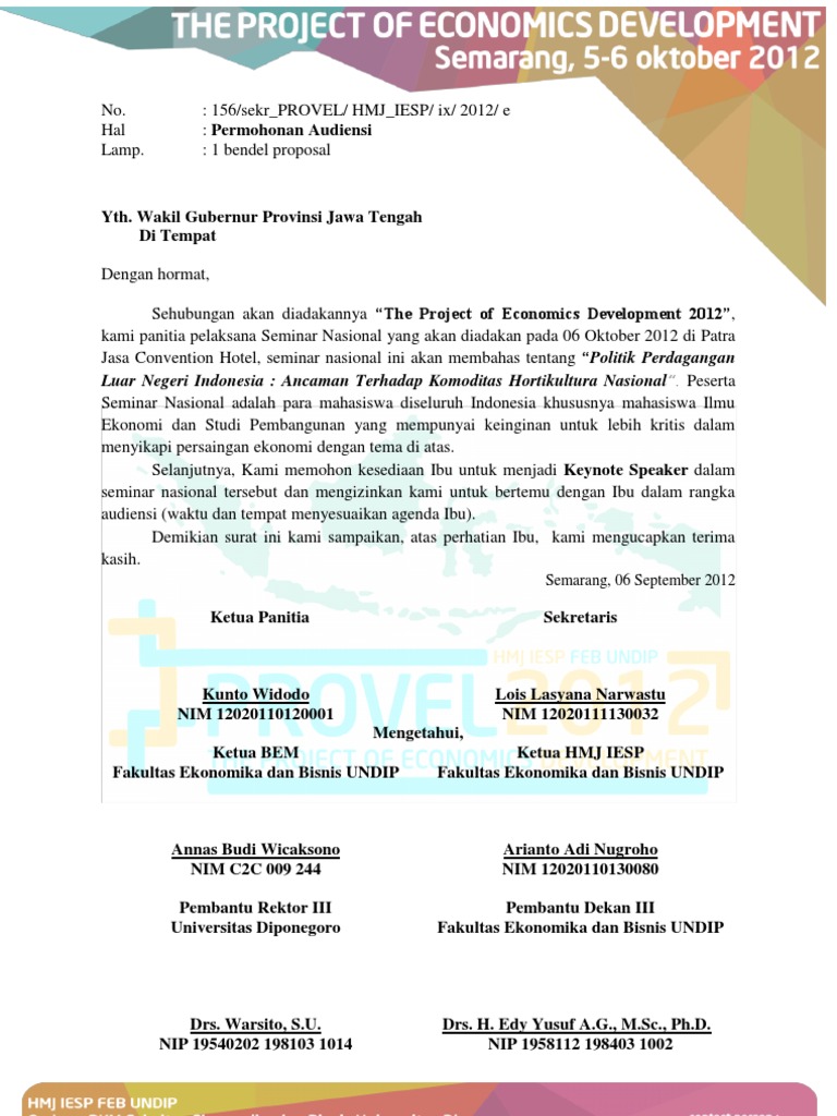 Surat audiensi ke dinas pendidikan 3. Audiensi secara harfiah diartikan sebagai sebuah awal dari pertemuan antar satu orang atau lebih bahkan dalam cakupan sebuah organisasi. Ø membawa surat resmi dari instansi atau institusi yang mengajukan permohonan audiensi. Created for just one purpose contoh surat audiensi ke gubernur. 0 response to contoh surat audiensi hmi post a comment. Namun, anda akan merasa sangat terbantuk apabila melihat contoh format surat audiensi yang kami bagikan berikut ini. Maka dalam penulisan surat audiensi, digunakan kop surat lembaga tersebut. I gusti ngurah winanda wijaksana, st. Maka bersama surat ini kami formateur dan middle formateur terpilih bermaksud memohon audiensi dengan bapak. Contoh surat audiensi ke perusahaan format 625 x 884 contoh surat audiensi ke camat kumpulan template surat format 474 x 664 pixel download contoh lamaran kerja di tvri contoh surat kunjungan format 1200 x 630 pixel download surat ke walikota audiensi format 768 x 1024 pixel download surat. Format contoh surat audiensi gubernur yang benar 2019. This is article about contoh format surat audiensi umum yang baik dan benar with description. Demikian beberapa contoh surat audiensi ke gubernur yang baik dan benar.